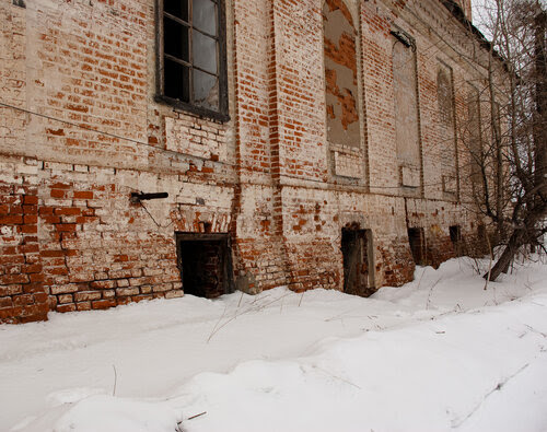 Надо сказать, что сама по себе дорога до Юртика зимой довольно-таки приятна, чего нельзя сказать про её разбитый асфальт летом. Само село оставляет довольно-таки тягостные ощущения местами провалившимися крышами домов, зарастающими в округе полями и прочими признаками упадка. Но впрочем, в родном районе видал и хуже. Но, собственно, о самой церкви пора бы уже написать.